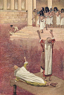 Then Moses spoke to Aaron, by God's command: "Take your rod and wave it over the waters of Egypt, over the river Nile, and the canals, and the lakes."